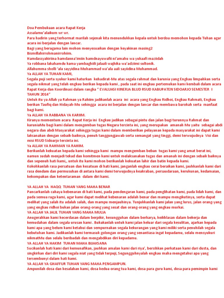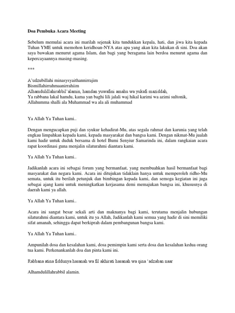 Doa Pembukaan Acara Rapat Kerja Pdf